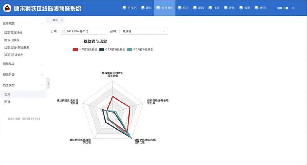 该系统主要包括数据集成、可视化算法集成、预测分析报告、市场商情等内容,全面融入唐宋十余年算法研究成果,指导企业市场预判、购销决策以及期现货交易等